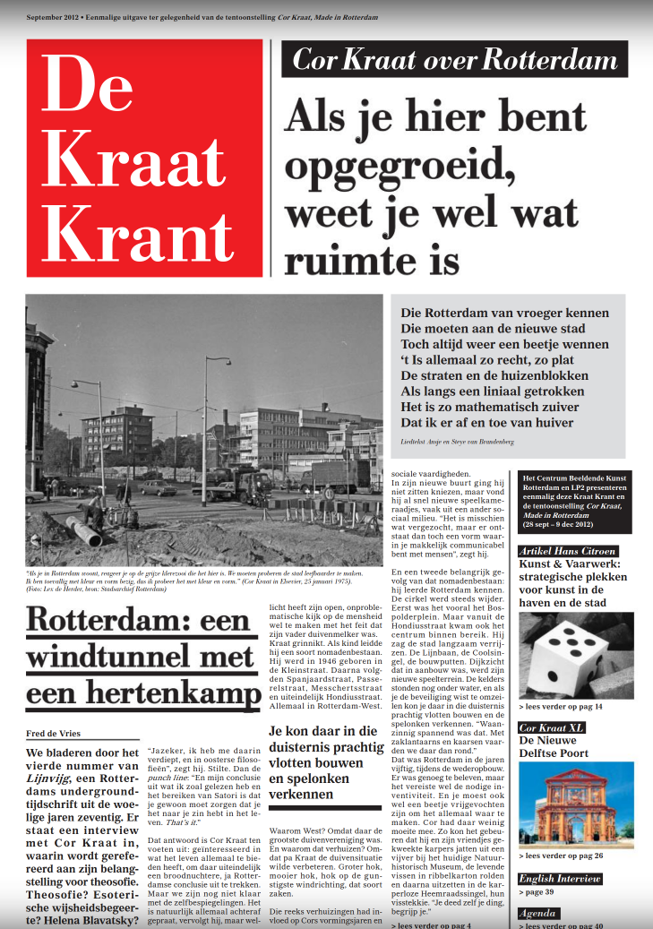 In een krantenartikel in Het Vrije Volk uit 1985 schetste Cor Kraat zijn visie op het Nederlandse kunstklimaat:
