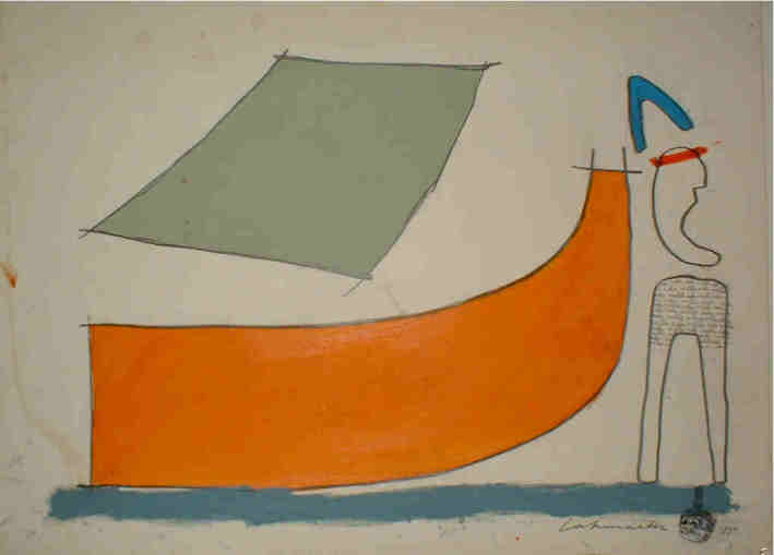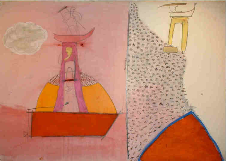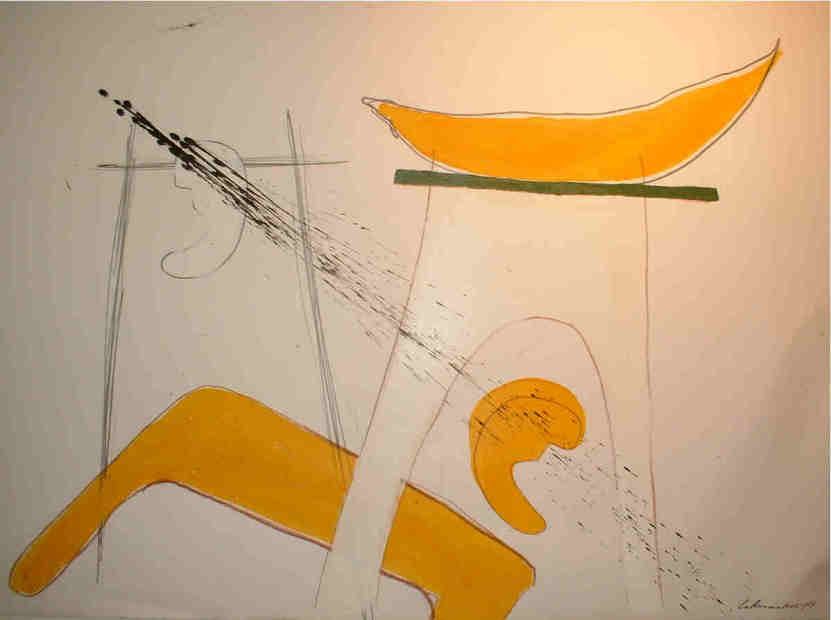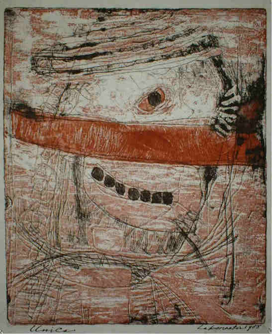 Met trots mag ik mij de eerste en enige leerling van Gerrit Lakmaaker noemen, hoewel van serieuze lessen nauwelijks sprake was. Doorgaans op vrijdagmiddag meldde ik mij rond een uur of een in het atelier van Gerrit aan de Duyststraat. Na de thee (ongelofelijk maar waar) gingen wij aan het werk. Gerrit in het zitje bij de ingang, ik achter zijn witte kunststof tekentafel bij het raam. Wat ik maakte deed er eigenlijk niet toe, als ik mijn fantasie maar gebruikte en gewoon aan het werk ging. Die kunst, ach, die kwam dan vanzelf wel. Later maakten wij in de kelder van ons huis aan de Rochussenstraat, geheel in Lakmaaker-stijl, gezamenlijk werken waarvan er enkele op deze pagina staan.
