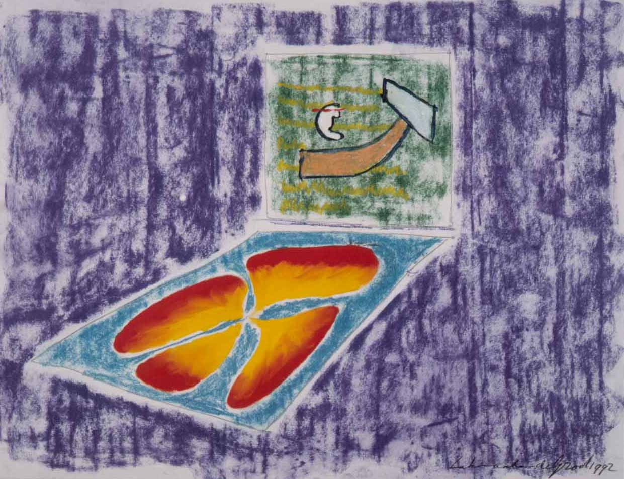 Het zou de eerste 'les' zijn die ik van Gerrit 'de Danser' zou krijgen. Lakmaaker hield ervan anderen aan het tekenen en schilderen te krijgen. Ook ik werd slachtoffer. Enkele weken na het gesprek, kwam Gerrit op bezoek. Hij had een cadeautje bij zich: drie oilsticks, rood, geel en blauw. En of ik maar snel aan het tekenen wilde gaan. Daar was hij tenslotte voor gekomen.