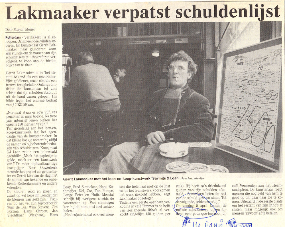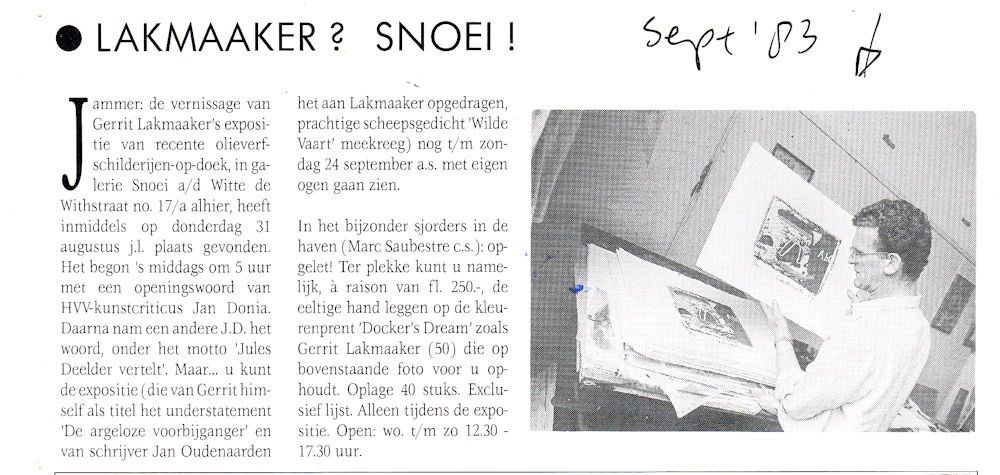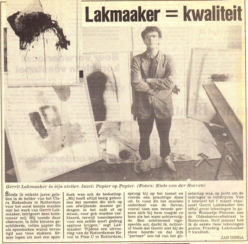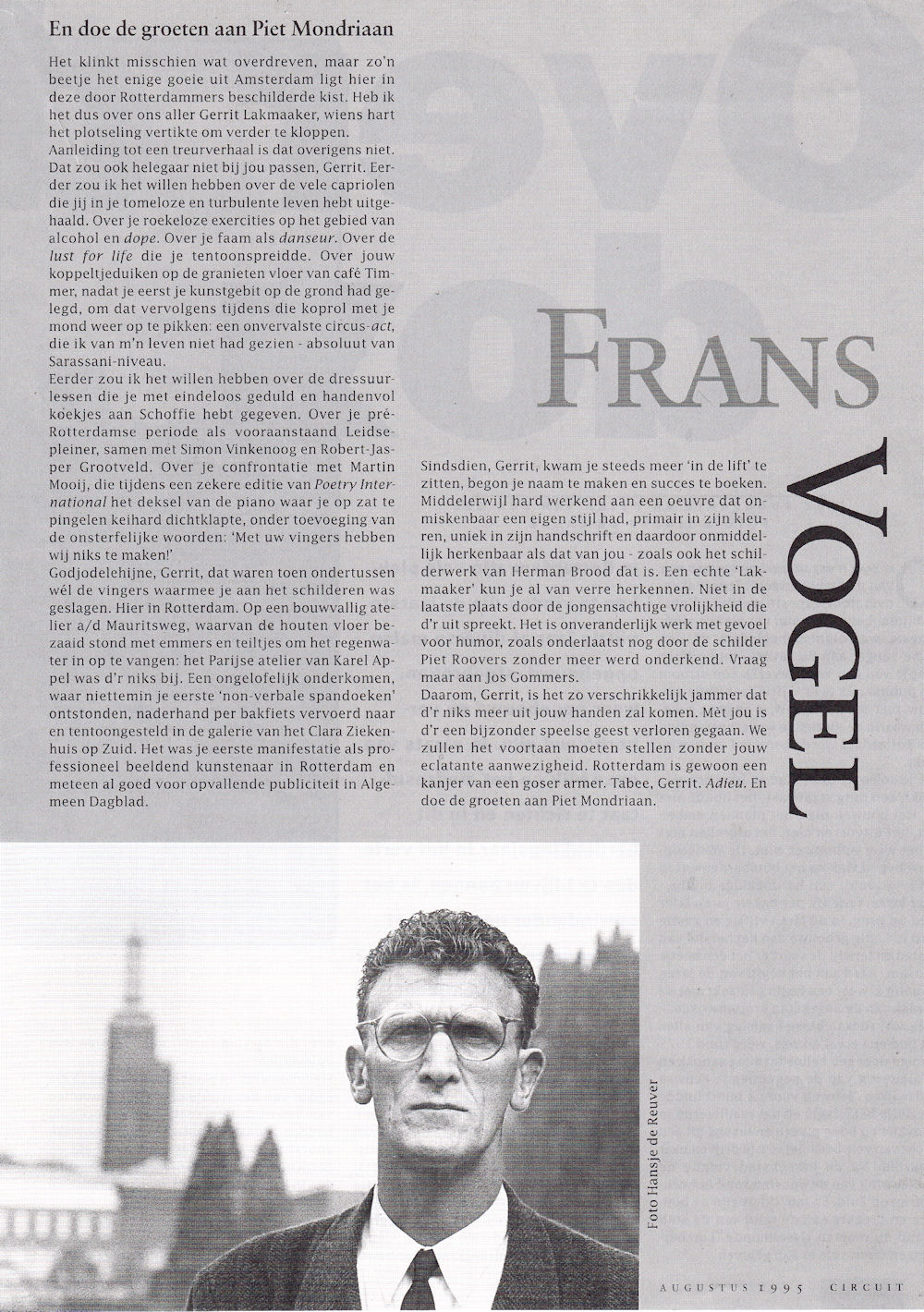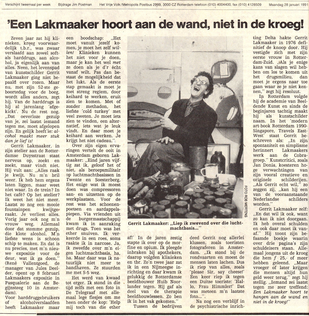 Op een mooie zomermiddag in 1992 leerde ik in cafe Timmer in hartje Rotterdam Gerrit Lakmaaker kennen. Gerrit was beeldend kunstenaar.
