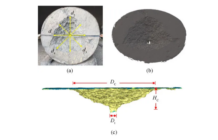 According to source [3], after the penetration tests, the concrete targets were carefully cut along the penetration boreholes, presenting the sectional views of five targets. The tunnel diameter gradually decreased from the tunnel entrance to the end of the tunnel to equal the diameter of the projectile shank, indicating that the high-speed movement of the projectile/target interface at the initial stage of penetration caused the concrete to expand radially and independently move outward a certain distance based on the surface velocity of the cavity before stopping.