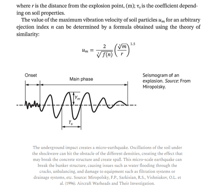 The effect of the shockwave that Oreshnik can create includes overpressure, thermal effects, energized projectiles (fragments, debris, and missiles), ground shock, and caterings. The peak particle velocity (PPV) is the most representative parameter for describing the ground motion and tunnel response. Blast stress waves have limited duration, high vibration frequencies, and short wavelengths, which affect tunnels in the form of cylindrical waves. This can also create a spall effect.