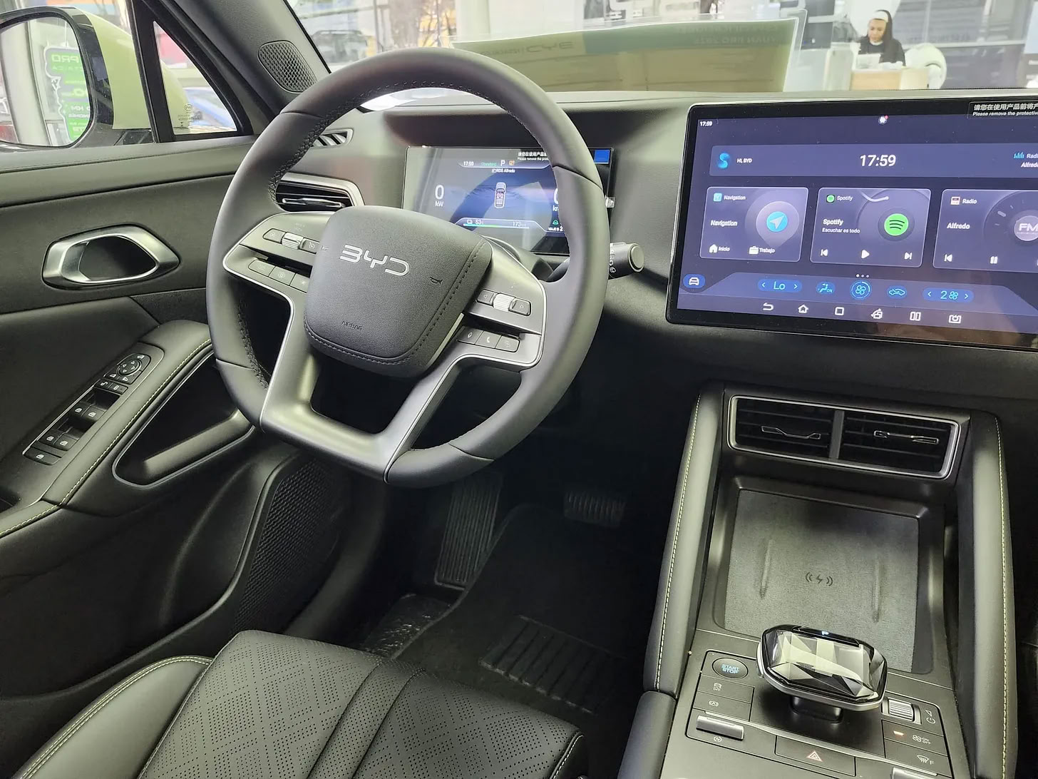 During my visit, I got to go inside the showroom demo models of the Shark (a hybrid pickup truck) the Song Plus (a hybrid SUV), the Yuan Plus (an all-electric SUV), the Dolphin Mini (an all-electric hatchback), and the Sealion 7 (an all-electric family car).