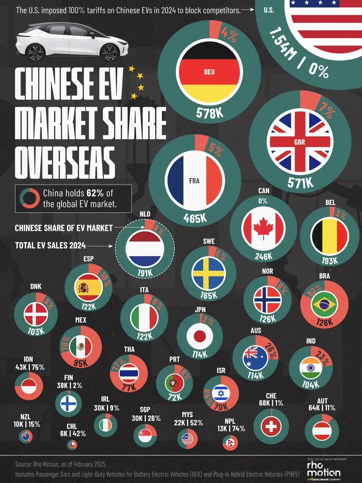 And those cars are more and more widely available. As of early 2025, China’s electric cars accounted for 62% of the total worldwide EV market, 70% of the total EV market in Mexico, 75% in Indonesia, 77% in Thailand, and 82% in Brazil. Notably, a lot of the countries where China has established early market dominance are selling relatively few EVs right now, but have large populations, meaning they have the potential to absorb a lot more. Indonesia’s EV market amounted to just 43,000 cars in February 2025, but Indonesia is home to over 280 million (280,000,000) people, and it’s developing fast — there’s a lot of room to grow. And BYD intends to fill that space by providing an ever-growing quantity of cheap, clean, and luxurious cars. They’re currently building a new EV factory (and employee housing) complex in Zhengzhou that will has been reported to be larger than the U.S. city of San Francisco, set to produce one million cars per year. I suspect there will be more built soon.