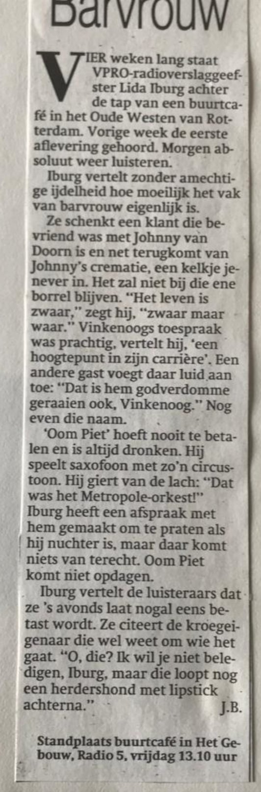 (zie krantenartikel)